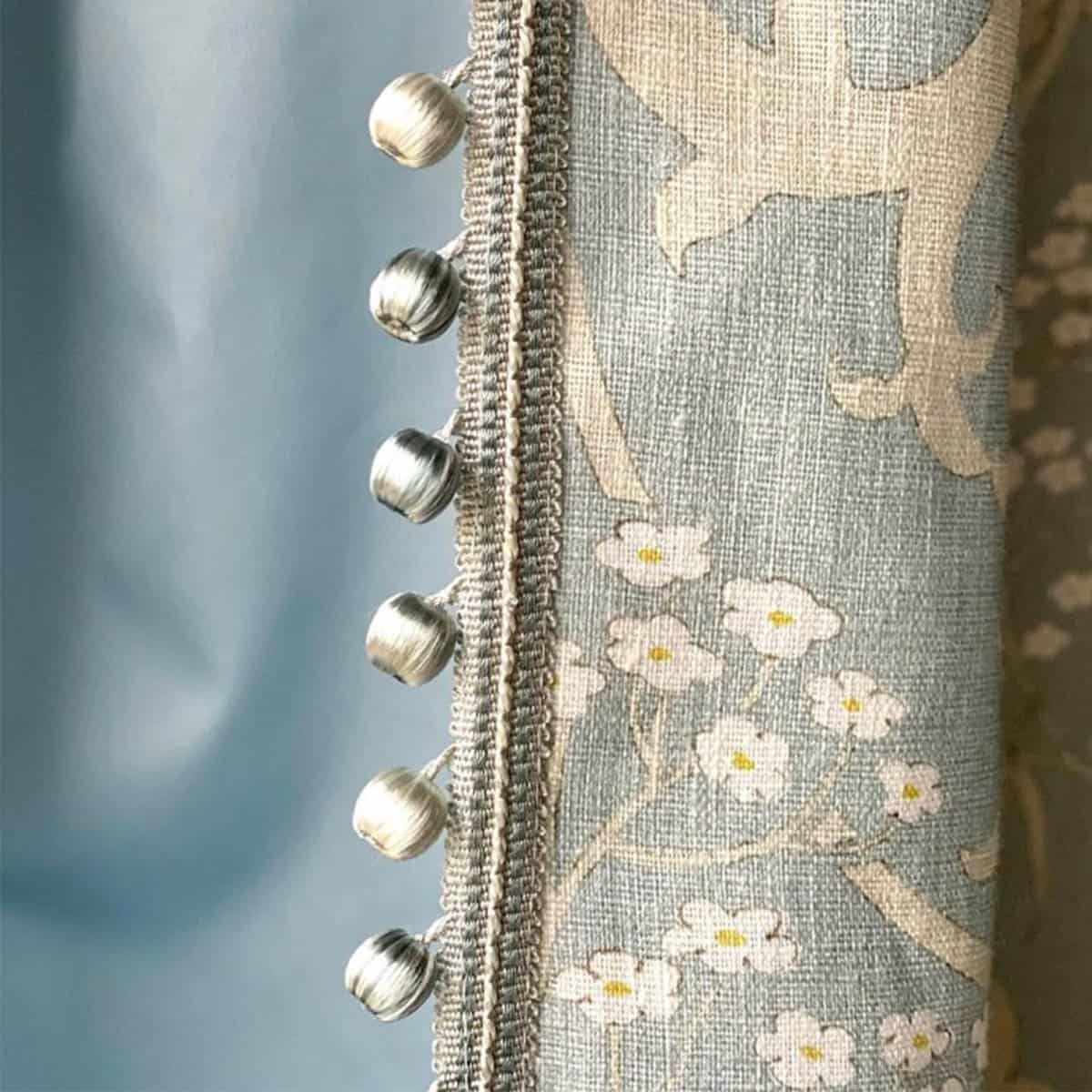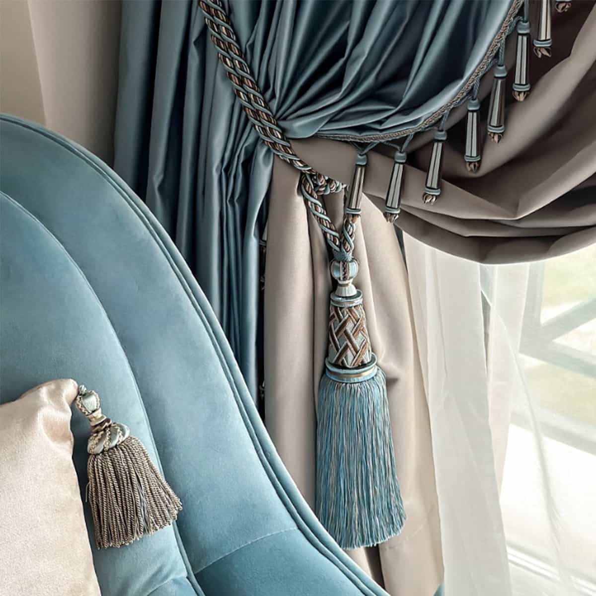 Grazie alla nostra esperienza nella progettazione d’interni e nella realizzazione di tende su misura, utilizziamo finiture sartoriali di pregio che arricchiscono ogni creazione, valorizzando l’ambiente in cui sarà inserita. Tra le proposte più apprezzate spiccano le passamanerie francesi, perfette per chi desidera uno stile sofisticato e senza tempo.