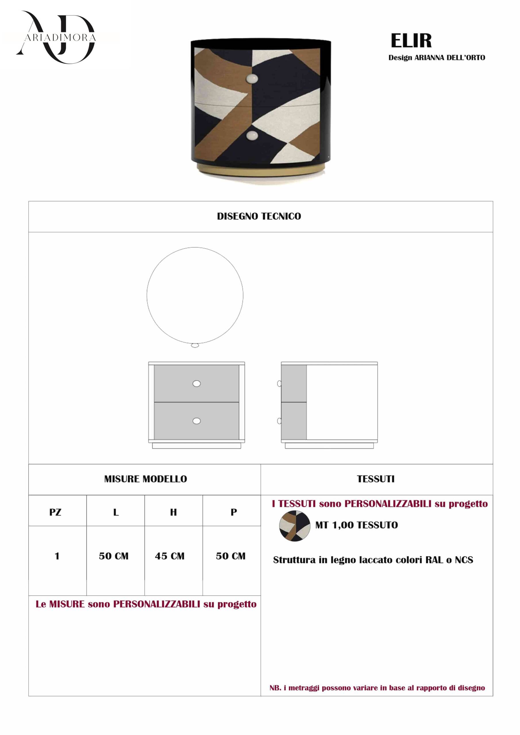 Compatto e pratico, Elir è pensato per offrire ordine e superficie d’appoggio accanto al letto, integrandosi con naturalezza in ambienti raffinati o più eclettici.