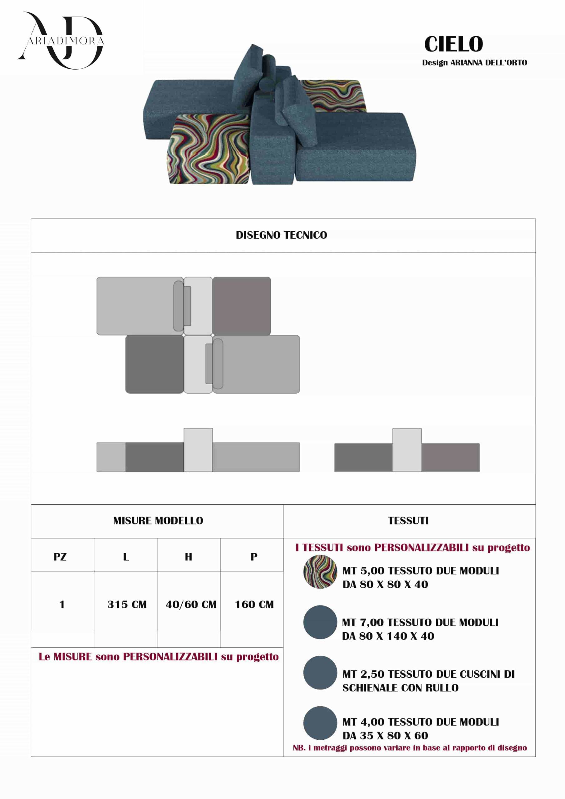 A differenza dei divani standard, Cielo non impone scelte preconfezionate: ogni materiale, colore e finitura viene selezionato liberamente, dando vita a mobili personalizzati in piena sintonia con l’ambiente.