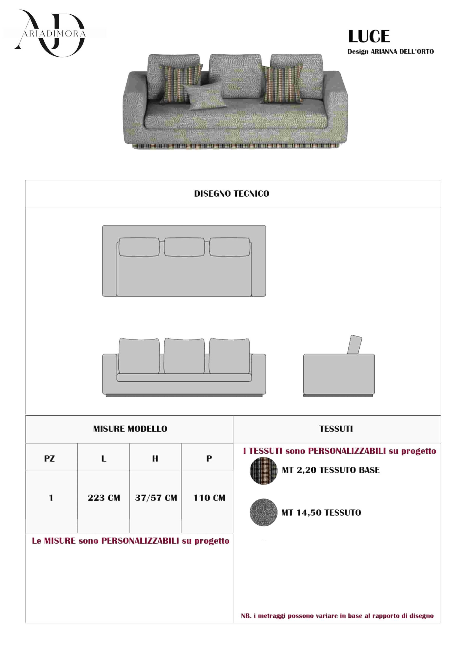 A rendere Luce unico è la possibilità di scegliere qualsiasi texture dall’archivio Ariadimora, superando i limiti delle collezioni standard. In base alla texture selezionata, il divano assume un’identità diversa: da sobria a vivace, da minimal a audace.