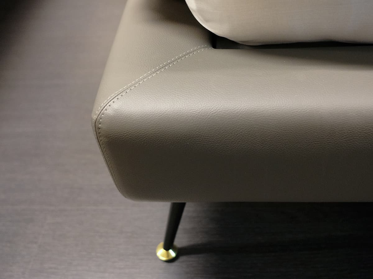 Due elementi imbottiti e rivestiti si estendono in larghezza e sono connessi da un elemento centrale che può diventare superficie d’appoggio, base per illuminazione o supporto tecnico. La composizione, essenziale ma ricca di presenza, scandisce lo spazio con equilibrio e leggerezza.