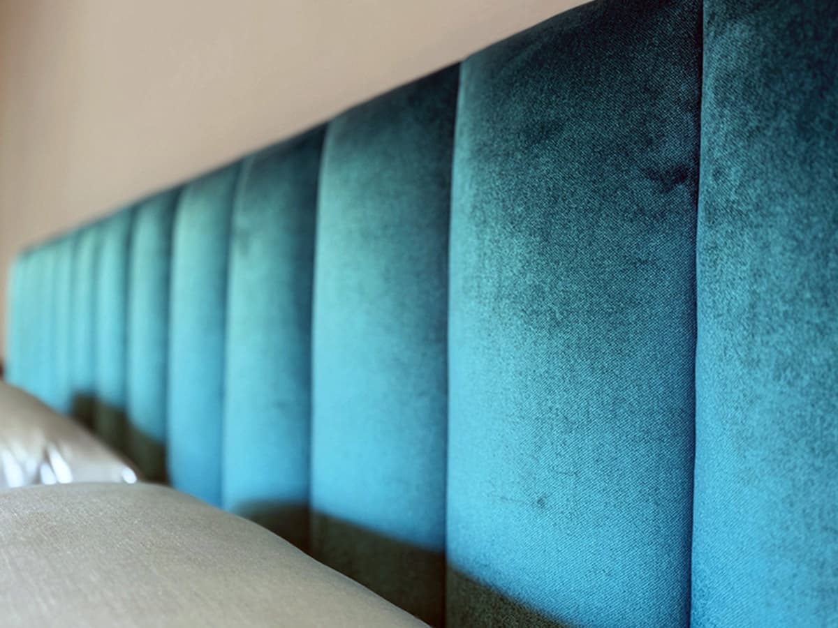Marin è un letto su misura dallo stile elegante e contemporaneo, caratterizzato da una testata composta da moduli imbottiti che creano un effetto visivo tridimensionale.