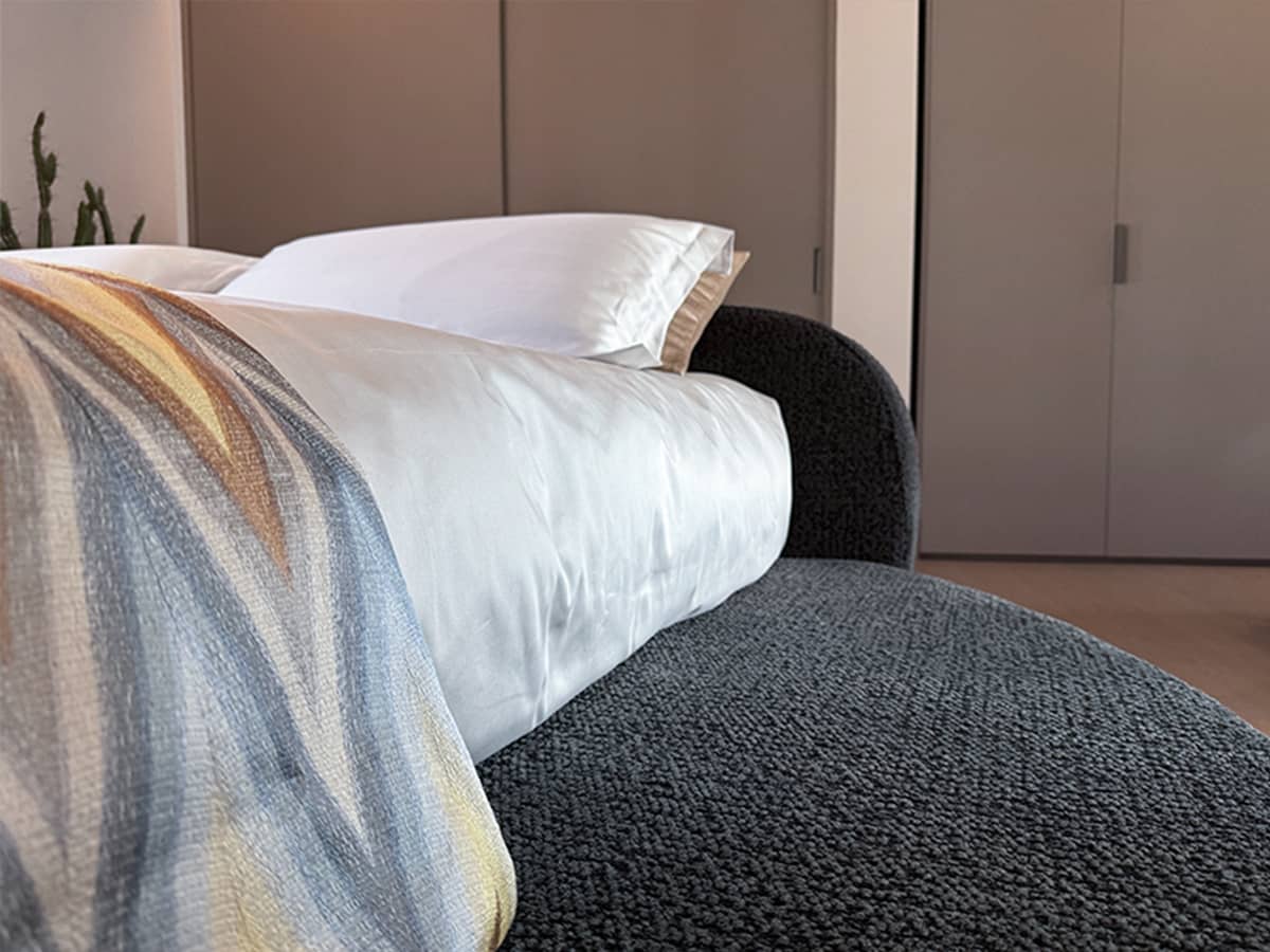 I nostri arredi sono pezzi unici, progettati su misura per ogni cliente. Grazie a un’ampia selezione di tessuti e finiture, creiamo soluzioni personalizzate in ogni dettaglio, che riflettono gusti, stile e reali esigenze abitative.