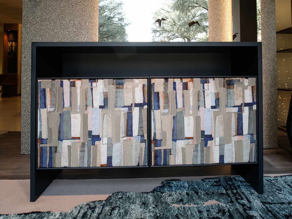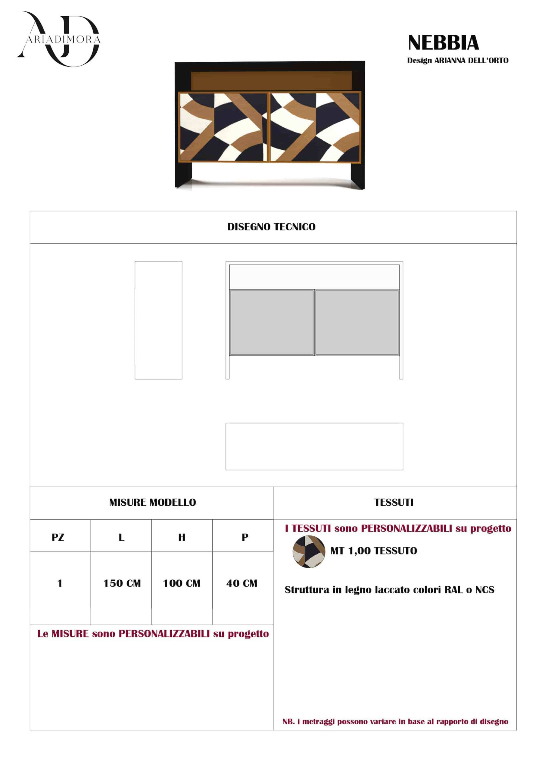 Nebbia è una madia su misura dal design essenziale e architettura pulita, pensata per chi cerca un arredo elegante e altamente personalizzabile. La sua struttura lineare a ponte, con vano a giorno nella parte superiore, sostiene due grandi ante rivestite completamente in tessuto, protagoniste visive del mobile.