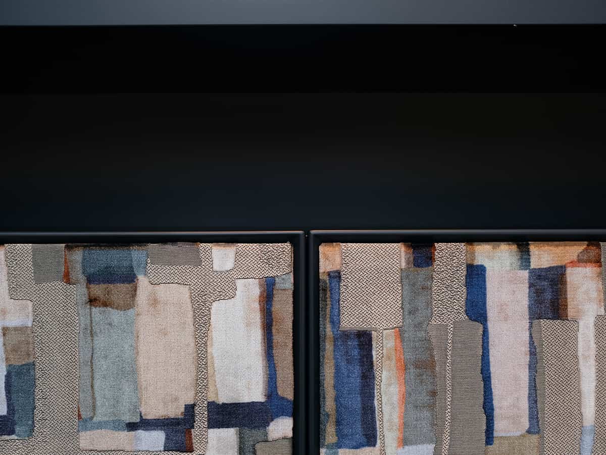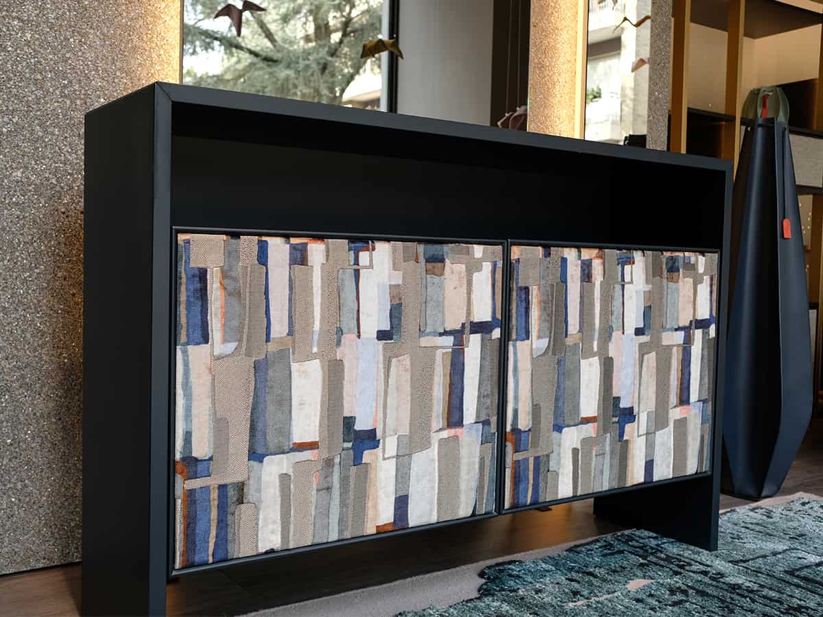 Il rivestimento tessile rappresenta l’elemento distintivo di Nebbia: ogni modello può essere personalizzato scegliendo liberamente tra le finiture dell’archivio tessile Ariadimora, che offre un’ampia varietà di trame, colori e texture per adattarsi a qualsiasi stile, dal minimalismo raffinato a progetti più decorativi.
