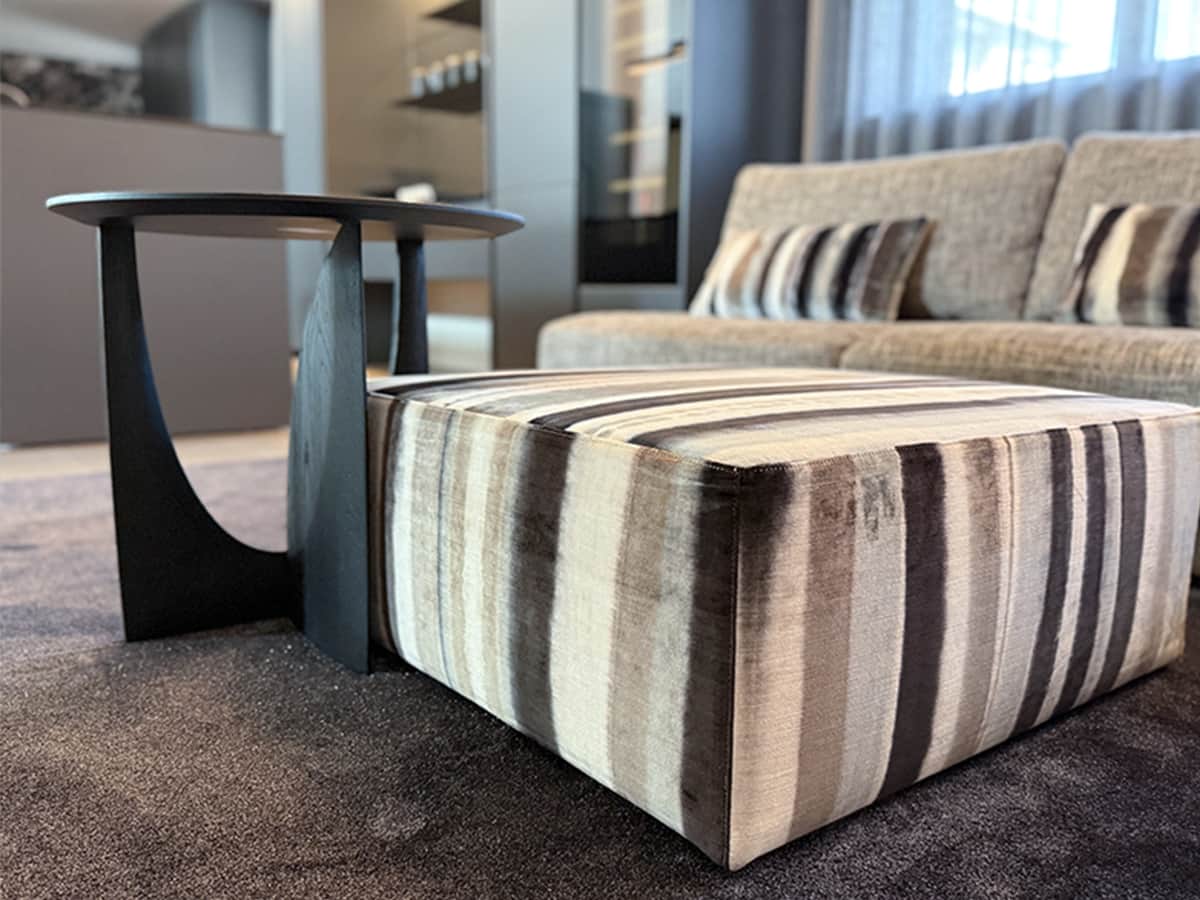 Perfetto per chi cerca pouf design, mobili in tessuto, arredi custom e mobili personalizzati nati da un’autentica attività di progettazione interni.