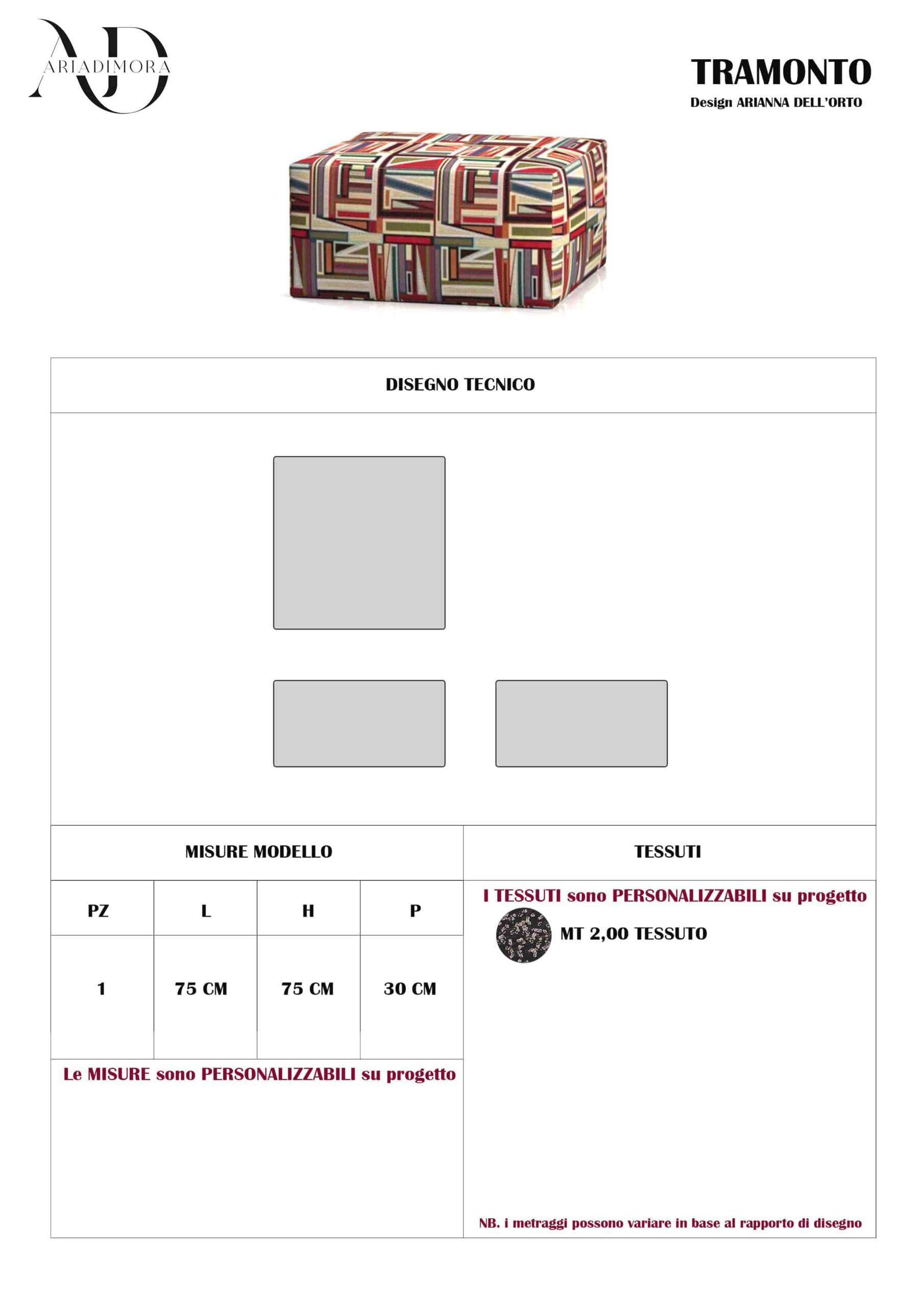 Tramonto è un pouf su misura dalla forma cubica, pensato per completare l’ambiente con stile e sobrietà.