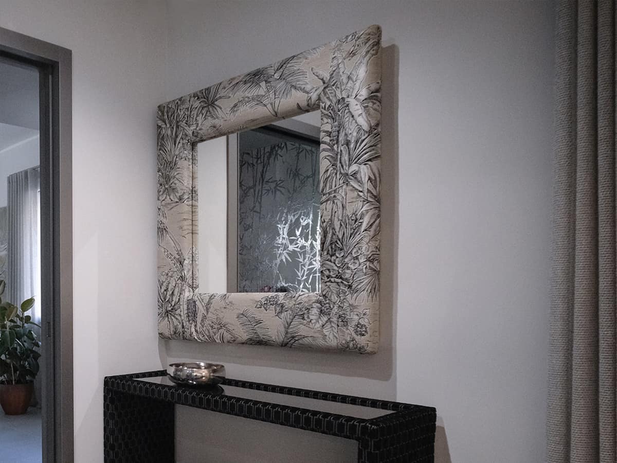 Pensato per chi desidera un elemento d’arredo esclusivo e su misura, Zefiro è uno specchio custom con cornice imbottita in tessuto, capace di trasformare la parete in un punto focale di eleganza, profondità e luce. Con linee sofisticate e proporzioni equilibrate, si integra perfettamente in progetti di interior design sia moderni che classici.