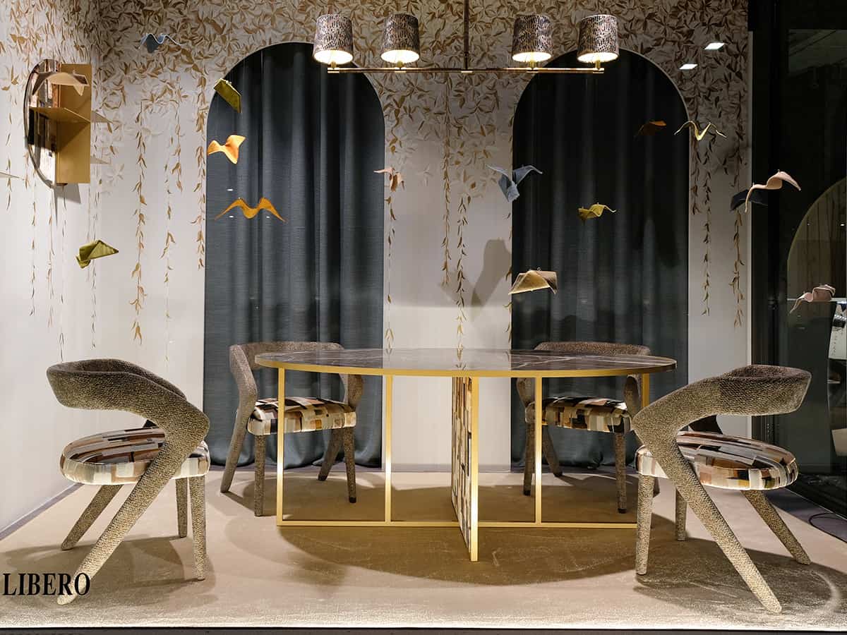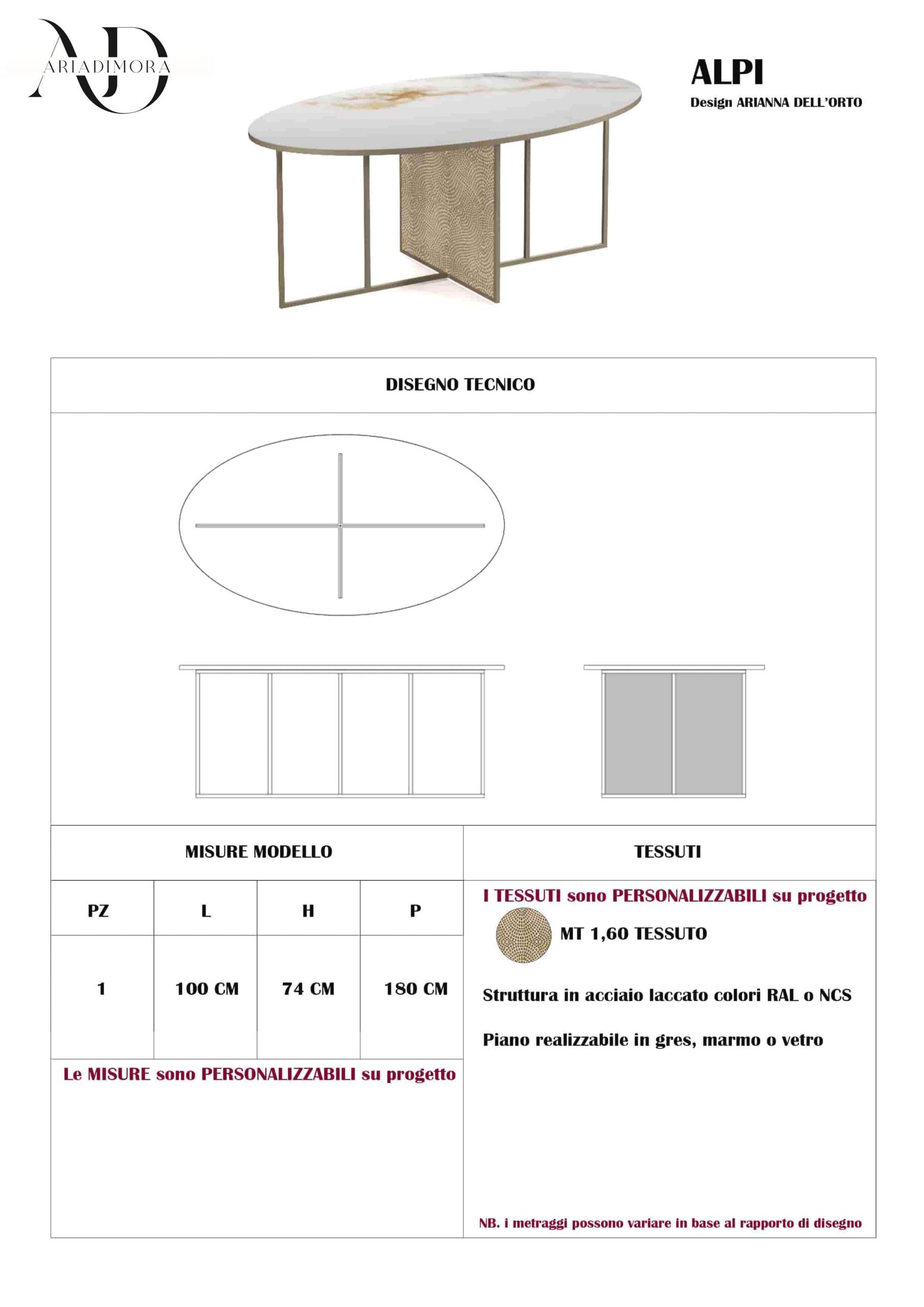 A differenza delle proposte standard, Alpi non impone limiti di collezione: il rivestimento può essere scelto liberamente da tutto l’archivio Ariadimora, includendo qualsiasi tessuto, senza vincoli di catalogo. Ogni texture dona al tavolo un’identità diversa, dal più essenziale al più decorativo.