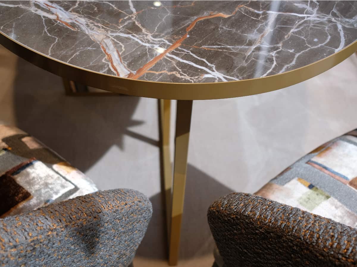 Un dettaglio removibile che, pur discreto, offre la possibilità di rinnovare nel tempo l’estetica del tavolo in modo semplice e duraturo.