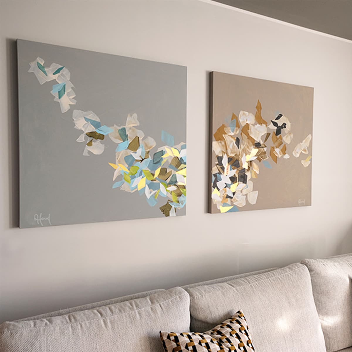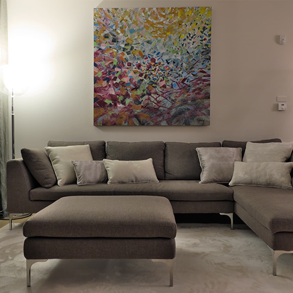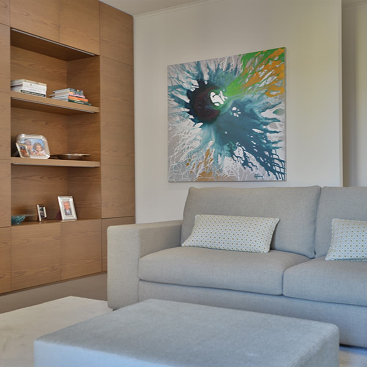 Le nostre creazioni si distinguono per l’uso di fantasie astratte, realizzate con la tecnica della spatolatura su tela, e sono studiate per integrarsi perfettamente con i colori e lo stile dell’ambiente circostante. Ogni quadro è fatto su misura, pensato per armonizzarsi con l’arredo esistente e rispondere alle specifiche esigenze estetiche e funzionali dei nostri clienti.