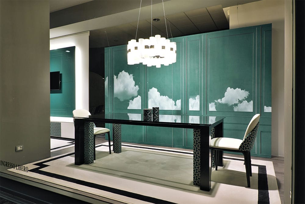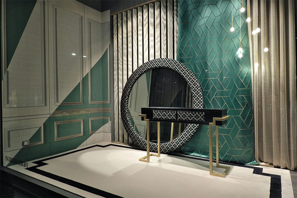 In particolare, la sua versione verde smeraldo è stata di ispirazione per queste vetrine. Il color verde smeraldo è infatti la gradazione più luminosa e brillante di verde, con un sottofondo di blu che lo rende particolarmente intenso. Tra i diversi verdi è infatti quello che trasmette il maggiore senso di preziosità ed eleganza.
