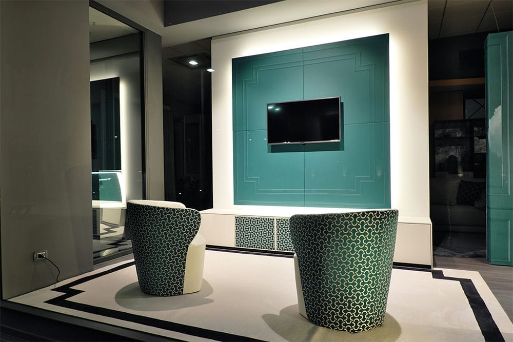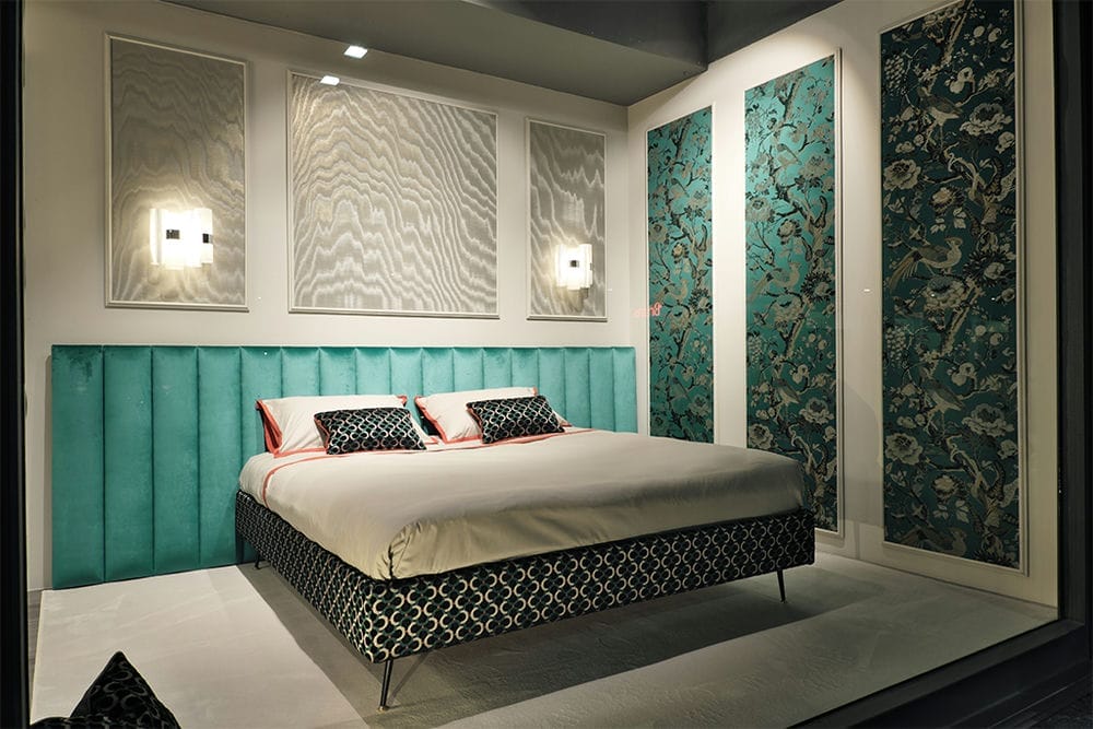 Per creare le nostre vetrine abbiamo utilizzato alcuni dei tessuti più iconici di Dedar.